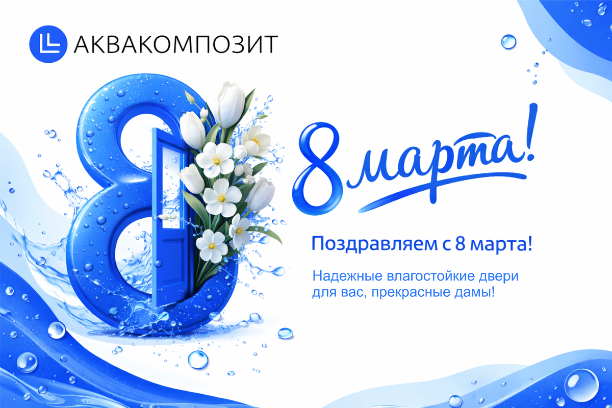 Дорогие девушки! От всей души поздравляем вас с Международным женским днем — 8 Марта! Пусть этот весенний праздник наполнит вашу жизнь теплом солнечных лучей, ароматом цветов и яркими красками вдохновения. Желаем вам счастья, гармонии, красоты и благополучия! Пусть каждый день приносит радость, улыбки близких и приятные сюрпризы судьбы. Команда Аквакомпозит гордится партнёрством с вами и готовы вместе двигаться вперед навстречу новым свершениям! С теплом и уважением,