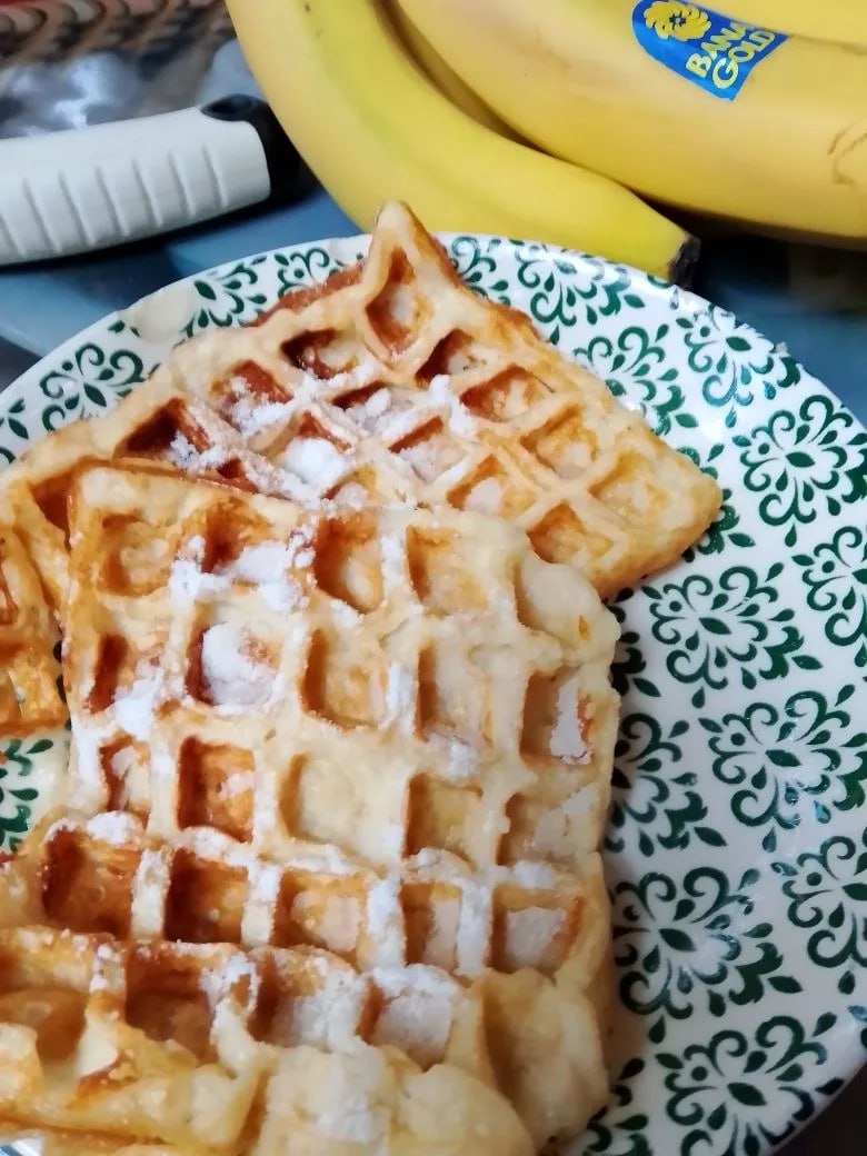 Завтрак.... творожные-банановые вафли...Бон Аппетит