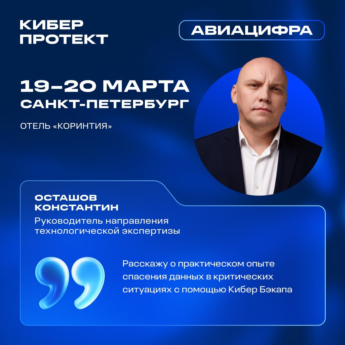 » Авиационная отрасль — это не только самолеты, но и огромные объемы данных. Для объектов критической информационной инфраструктуры (КИИ) вопросы отказоустойчивости и сохранности данных всегда стоят на первом месте. 19-20 марта команда Киберпротекта работает на всероссийской конференции «Авиацифра 2026». В программе от Киберпротекта: • Константин Осташов, руководитель направления технологической экспертизы, выступит с докладом «Мощь Кибер Бэкапа, которая спасла наших заказчиков» • На стенде эксперты ответят на интересующие вас вопросы Ждем вас на площадке конференции — в отеле «Коринтия Санкт-Петербург». Программа конференции⬅️ 💬 Киберпротект в MAX