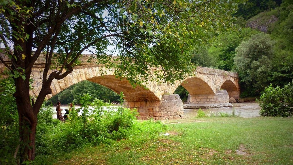 Это шоссе совсем рядом проходит с пещерами Нежной и Большой Азишской. Но Азишская больше для экстремалов. Там вертикальный спуск и много спусков-подъемов по мокрым, ржавым лестницам по полутемным залам, по мостикам через пещерные реки.