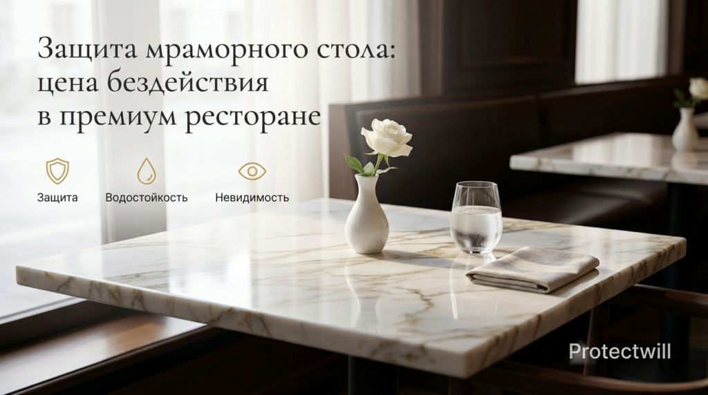 Команда Protectwill.ru, за 5 лет работы с пентхаусами и отелями Four Seasons, выяснила: срок жизни незащищенного мрамора в ресторане при полной посадке — ровно 3 месяца. После этого эстетика «живого» камня превращается в статью регулярных убытков.
