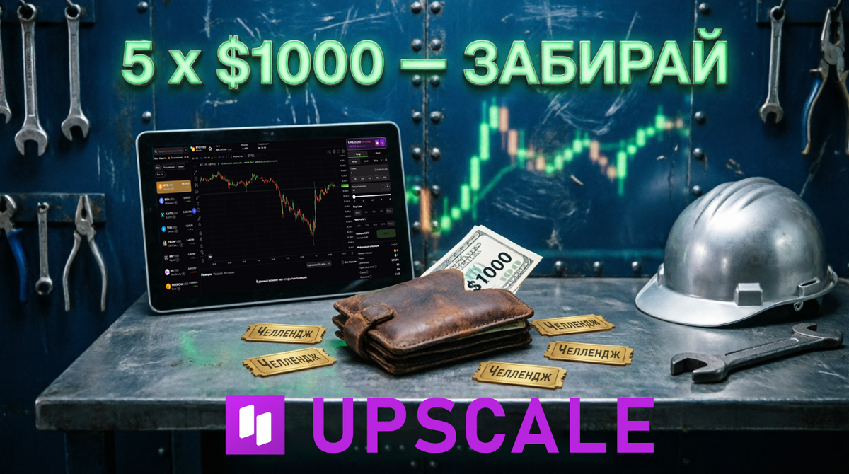 Круто для тех, кто хочет испытать себя в дисциплине и узнать, что такое челлендж. Что на кону: ✅ Проп-фирма Upscale ✅ 5 челленджей на $1,000 ✅ Прошёл? торгуешь на их деньги. Слил - опыт + возможность попробовать снова. Как участвовать: Переходишь по ссылке на Upscale и регистрируешься. Пишешь в комменты к этому посту в моем канале Telegram ответ на вопрос: 👉 «Почему ты чаще всего сливаешь депозит?». Всё. Больше ничего делать не надо. Срок - понедельник (09,03,2026). Выбор победителей будет через рандомайзер. Бонус для победителей 🏭: Кто выиграет, автоматически попадает в «Цех №8» (мой закрытый канал), даже если не покупал челлендж. Подарок так подарок. ‼️ Я никому не пишу первым, остерегайтесь мошенников! Ссылка для участия 👇🏻 Upscale