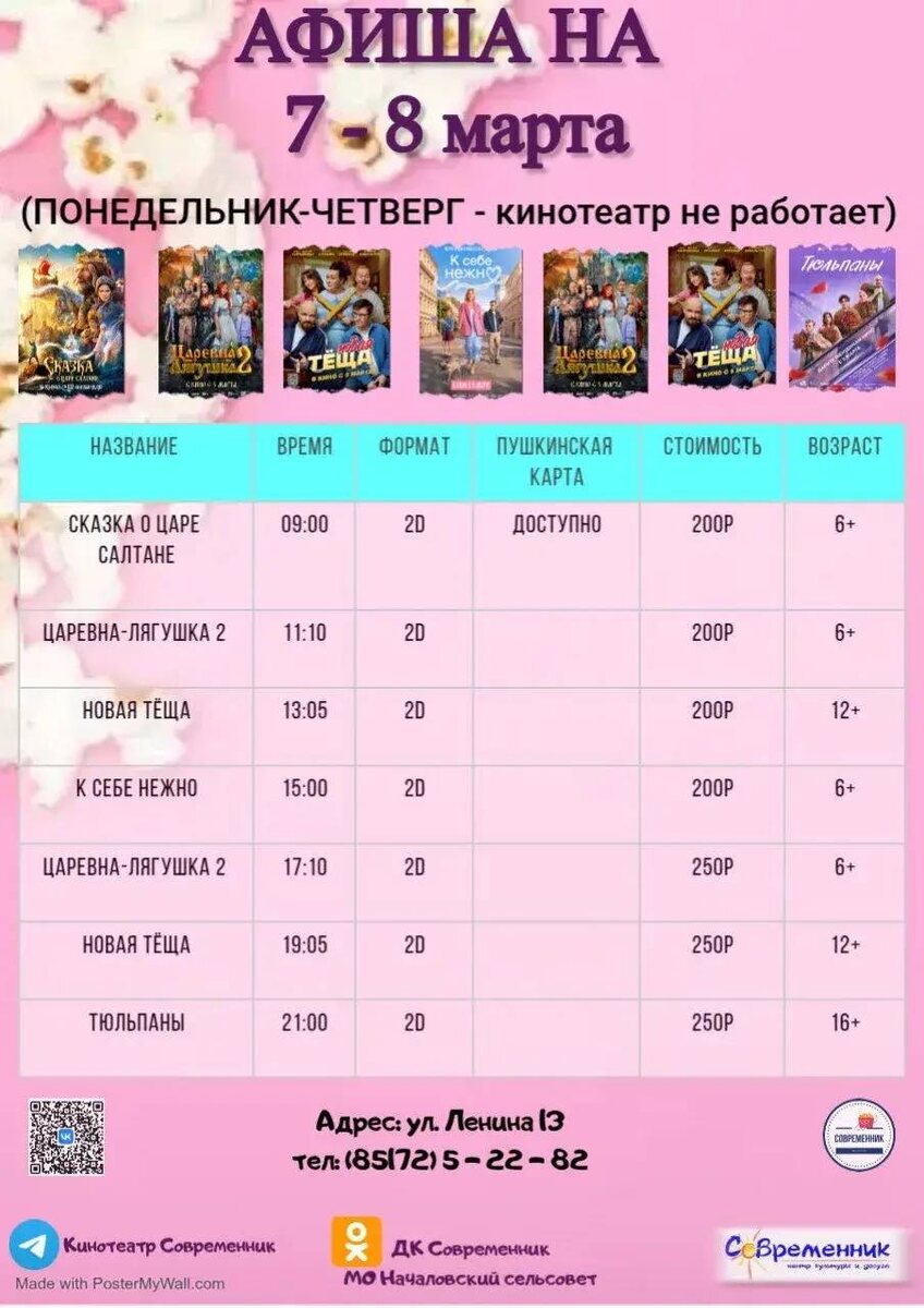 🍿В ДК «Современник» села Началово показывают новинки фильмов, доступные в прокате.