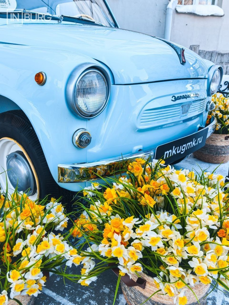 Известный фотограф Вадим Шамсияров снимал всех желающих на фоне корзин с цветами и небесно-голубого «Запорожца» из Музейного комплекса в Верхней Пышме. ❤️ — круто 📱 Мы в MAX | 📱 Мы ВКонтакте