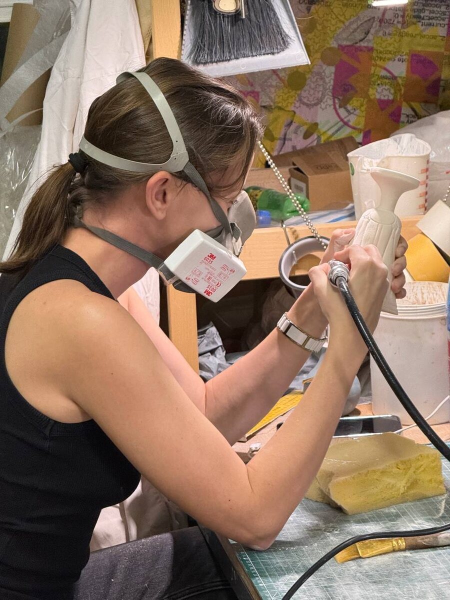 другое! Потому что можно поработать руками. В прошлом году меня посетила мысль, что в мире не хватает египетских бокалов в виде лотосов, и я взялась их делать. На фото вот фрезером тачаю канавки и всякие мелкие детали на обожженной модели из фаянса. Компанию мне составила юный археоозоолог Виктория Баранова. Она решила отвлечься немного от нарративов палеолита, намозоливших глаза во время написания диссертации, и занялась лепкой из глины. Вот, слепила женщину и аппетитную толстую лошадь. Или тигра. Тут возможны разночтения, ведь искуствоведение - наука тонкая. А вы как отдыхали?
