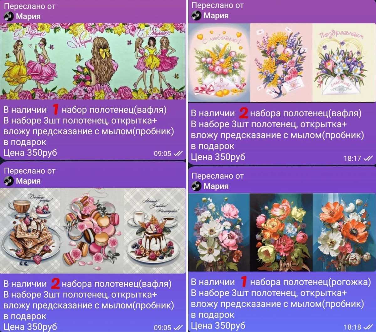 ☺️☺️☺️😀 Если вы не успели прикупить небольшие подарочки для своих близких, то скорее выбирайте наборы полотенчиков с весенним настроением😀 Я завтра поеду на ярмарку погулять в ТКЦ "Братск-Арт", можем договориться там встретиться и я передам выбранный вами набор🤗 Так же завтра смогу завести по центральной части города Братска куда скажите! В набор входит : 😀3 полотенчика 😀открыточка 😀предсказание+мыло 😀