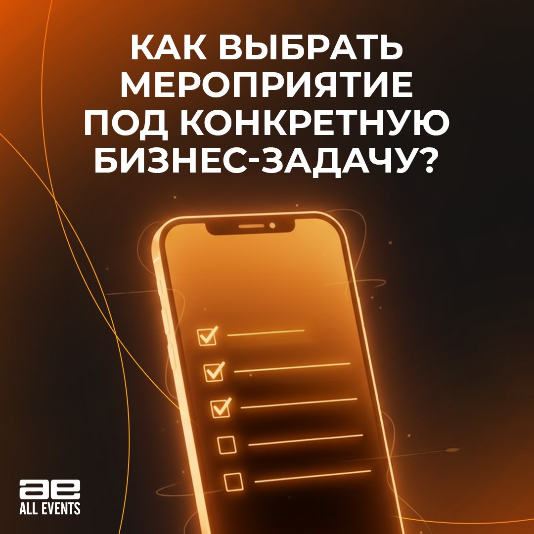 Как выбрать «свое» событие? Знакомая ситуация: календарь ломится от анонсов, а в итоге время потрачено, а пользы для бизнеса – ноль? Мы на All Events ежедневно видим сотни событий и знаем: успех начинается не на площадке, а в момент выбора. Держите простой чек-лист. Сохраняйте и пройдитесь по нему перед покупкой билета. 👆 Если на все пункты ответили «да», то можете смело регистрироваться. Если сомневаетесь – поищите другое событие. А чтобы вы не тратили время на отбор, мы уже сделали это за вас. На All Events только проверенные деловые мероприятия с невымышленными кейсами, но это не точно)
