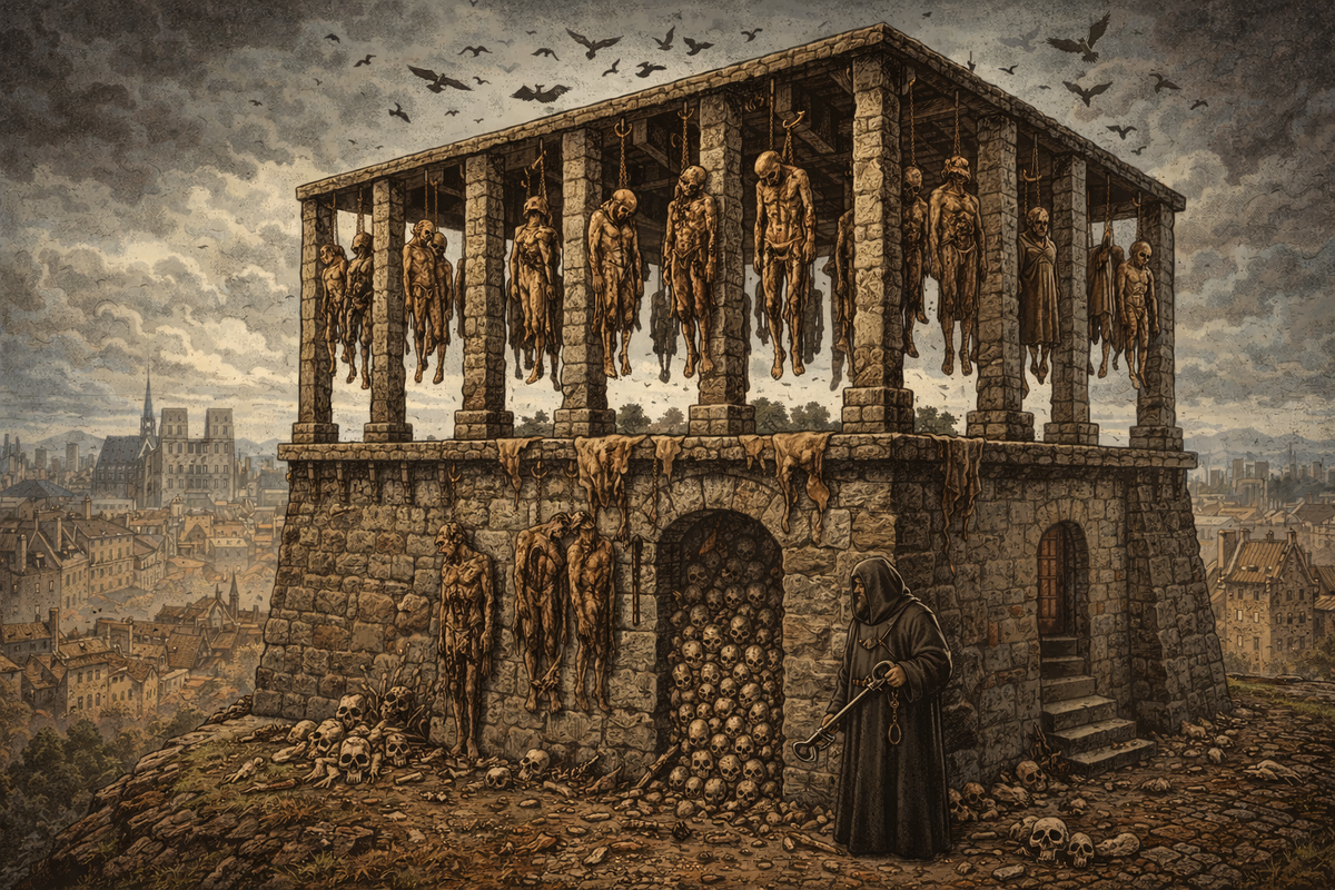 Однако в Средние века, когда казни происходили часто и публично, обычной перекладины оказалось недостаточно. Власти стремились не только наказать преступника, но и произвести впечатление на всех, кто станет свидетелем казни. Так в Париже появилось сооружение, которое на века стало символом ужаса и государственной жестокости - гигантская виселица Монфокон.