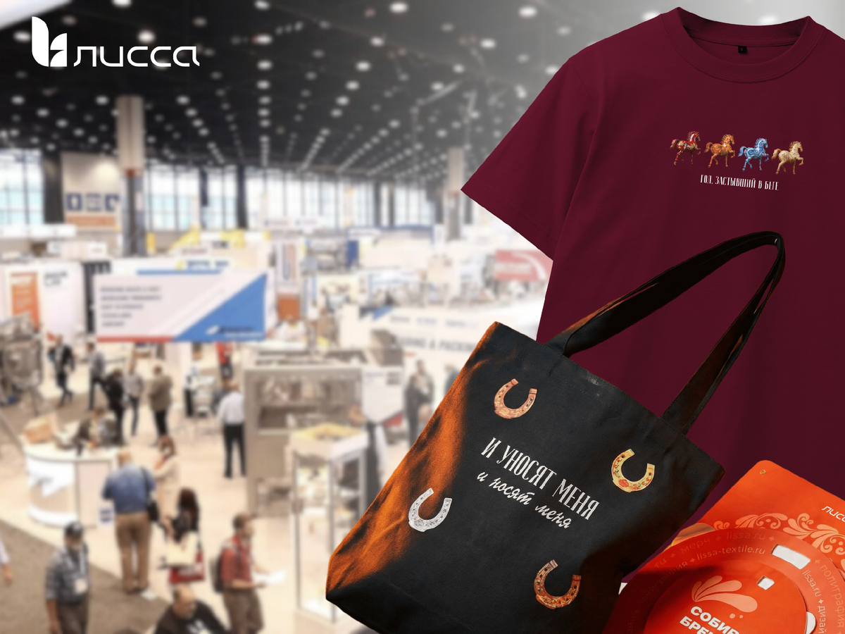 Для усиления визуального эффекта на выставке можно изготовить текстильный мерч, который смогут надеть ваши представители компании на мероприятии.