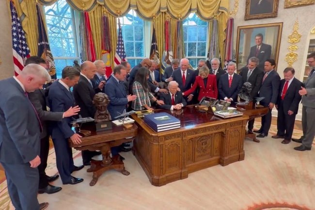 В Белом доме Дональд Трамп собрал своих советников для совместной молитвы в Овальном кабинете.В социальных сетях появляется видеозапись, где Трамп находится за столом, а рядом с ним располагаются его близкие соратники. Все они совместно слушают молитву пастора, основная цель которой — молитва о Трампе. Подобные мероприятия уже проводились в разные периоды его президентства. В 2018 году пастор Эндрю Брансон молился за Трампа, выражая благодарность президенту за поддержку в его освобождении. Он просил у Бога «божественной мудрости» для Трампа. Другие молитвенные собрания, посвященные Трампу, происходили в 2019 и 2025 годах. В последний раз пастор Трэвис Джонсон просил Бога «защитить Трампа кровью Иисуса». Молитвенные практики в политике США не новость и имеют глубокие исторические корни. Ранее многие президенты, включая Авраама Линкольна и Рональда Рейгана, также прибегали к совместной молитве, подчеркивая важность духовности в руководстве страной. Такие события часто освещаются в СМИ и