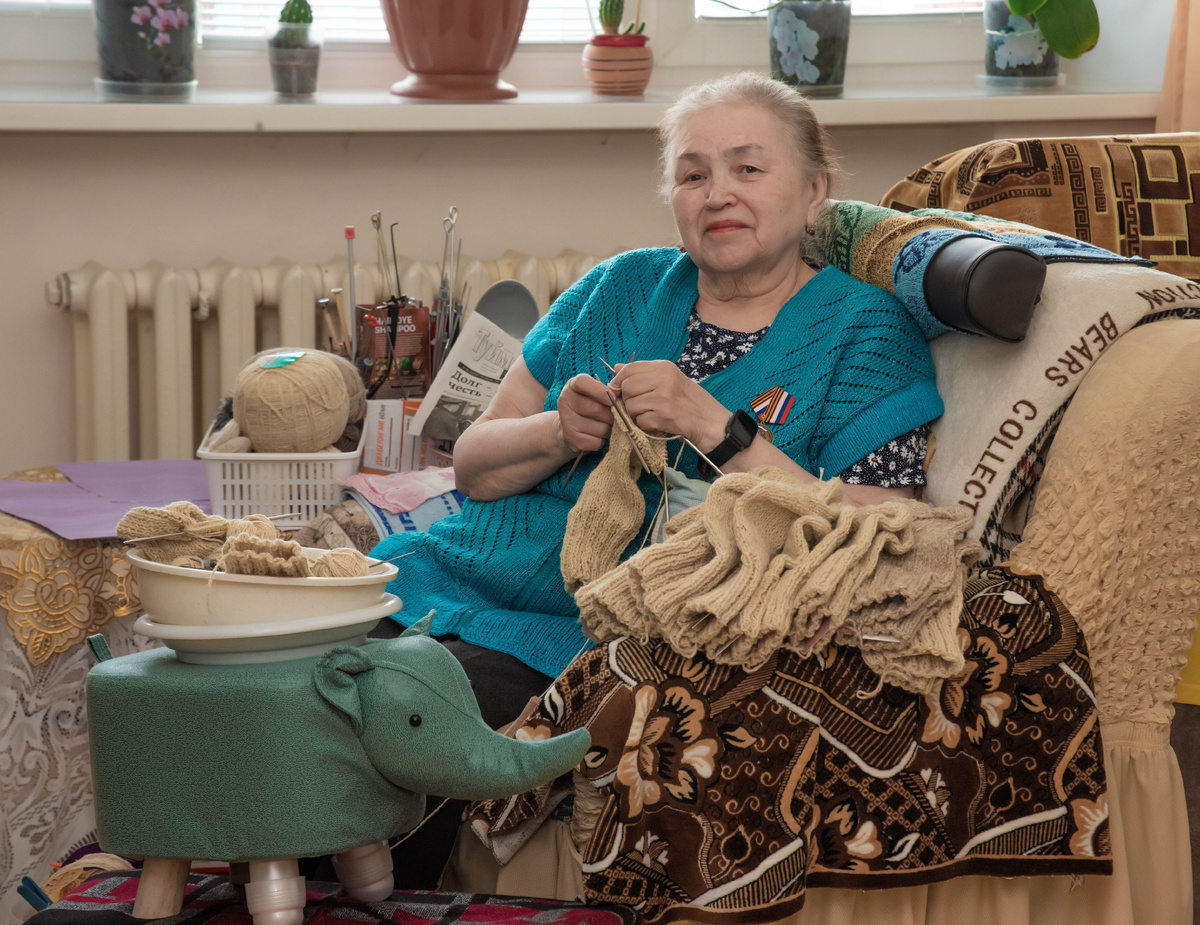 Танзиля Набиуллина вяжет шерстяные носки для военнослужащих с начала спецоперации. Танзиле Набиуллиной 73 года. Практически с первых дней спецоперации она вяжет носки военнослужащим СВО и отправляет их «за ленточку» с гуманитарным конвем. Бойцы ее знают, как «туймазинскую бабушку». В 2022 году женщина связала первые пары носков. Зима в тот год была суровая, и бойцы СВО в благодарность за заботу записали