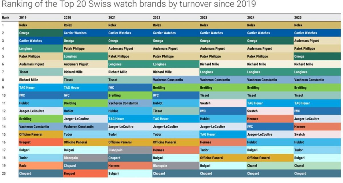 • Rolex продолжает рост выручки; последние оценки отрасли выводят выручку бренда в районе CHF 10–11 млрд.