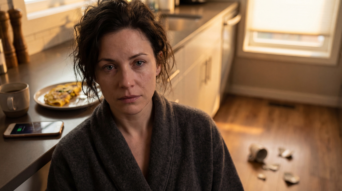 Алина стояла посреди кухни в пижаме, сжимая в руках осколки любимой кружки — она даже не заметила, когда та выскользнула из пальцев. Осколки усыпали пол, омлет остывал в тарелке, и только кофемашина тихо шипела, выпуская пар.