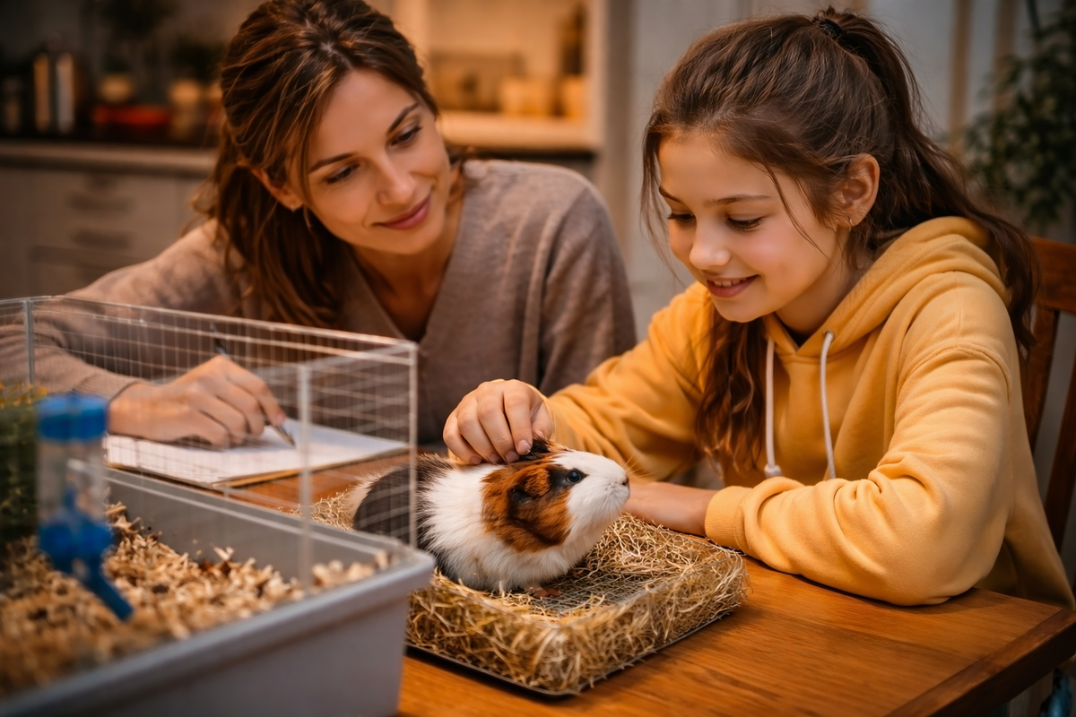 Я быстро осматриваю Кнопку. Зубы в порядке, вес хороший, шерсть блестит, кожа чистая, дыхание ровное. Свинка недовольно попискивает, но в целом видно: её кормят, чесают и, возможно, даже балуют лишним огурцом.