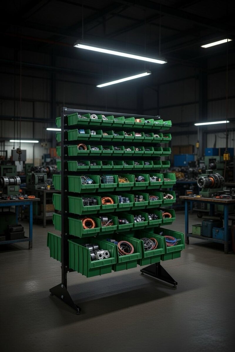 ⚙️ Стеллажи с пластиковыми лотками — must-have на производстве и сборке электродвигателей в 2026 году