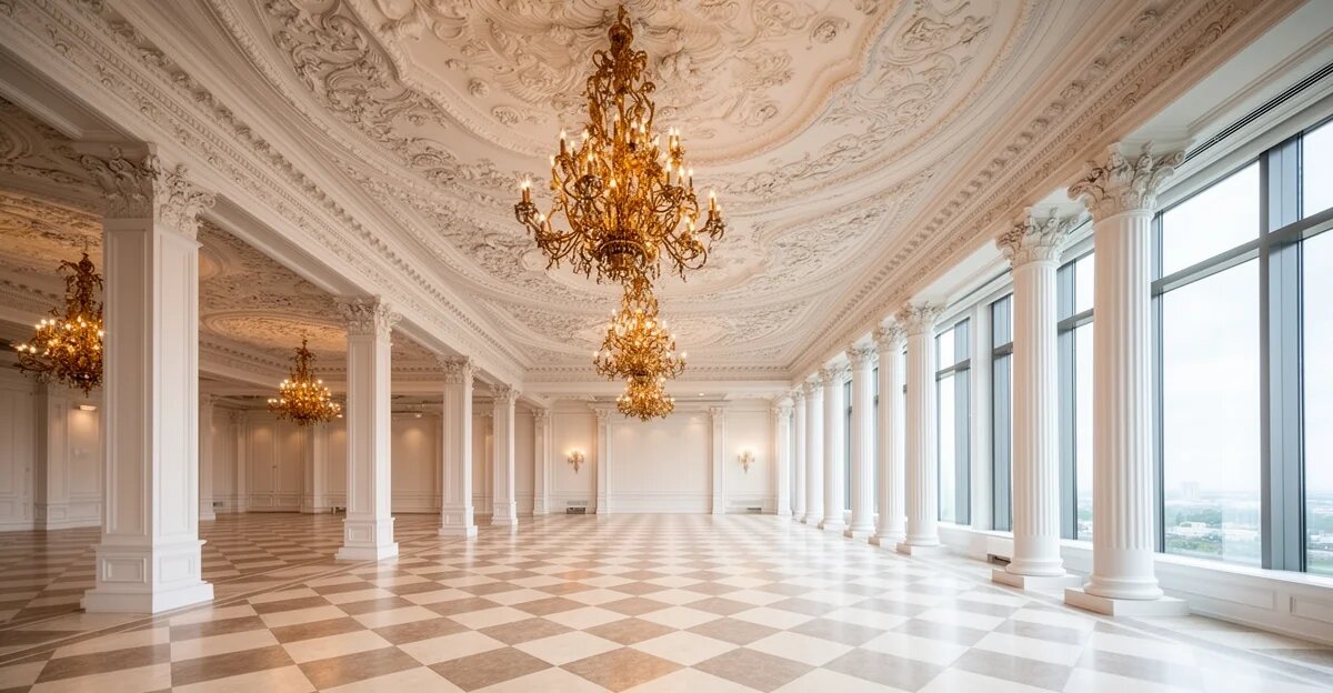 По плану проекта, главный зал будет украшен изысканной лепниной на потолке, позолоченными люстрами и рядами белых колонн, протянувшихся вдоль панорамных окон. Пол будет выполнен в виде шахматной доски из плитки в бежевых и серо‑коричневых тонах, создавая атмосферу роскоши и торжественности. Стоимость строительства оценивается в около 300 млн долларов США. Финансирование планируется обеспечить за счёт личных средств президента и пожертвований частных лиц и компаний, что подчёркивает личный интерес Трампа к данному проекту. Идея нового зала возникла в контексте стремления обновить интерьер Белого дома, добавить пространство для официальных приёмов, дипломатических мероприятий и культурных событий. По словам инициаторов, зал будет служить не только местом для торжеств, но и символом американского стиля и гостеприимства. Эксперты отмечают, что такой проект требует согласования с рядом государственных структур, включая службу охраны президента и комиссии по использованию государственных