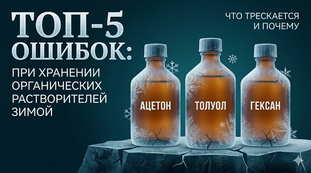 ТОП-5 ошибок при хранении органических растворителей зимой (ацетон, толуол, гексан — что трескается и почему