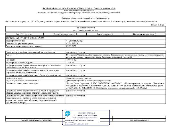 м, расположенного по адресу: Российская Федерация, Ленинградская область, Тосненский муниципальный район, Тосненское городское поселение, д. Новолисино, ул. Заводская, з/у 6б (кадастровый номер 47:26:0135002:327, категория земель - земли населенных пунктов, вид разрешенного использования – для индивидуального жилищного строительства) Канал: Госземля Ленинградская область Область: обл Ленинградская Район: м.р-н Тосненский Населенный пункт: г.п. Тосненское, д Новолисино, ул Заводская з/у 6б Локация: Смотреть на карте ВРИ: Для индивидуального жилищного строительства Кадастровый номер: 47:26:0135002:327 Кадастровая стоимость: - Вид сделки: Аренда Площадь: 1180 м² Начальная цена: - руб. Дата завершения: 06.04.2026 Подробнее: ГИС ТОРГИ #госземля #земляотгосударства #земля #земельныйучасток #земельныеторги #торги #аукцион #арендаземли #аренда #ленинградскаяобласть