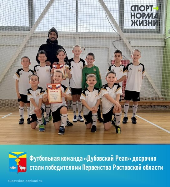 Константиновске прошел турнир по мини-футболу в рамках однодневных турниров на Первенство Ростовской области среди детей 2017-2018 годов рождения. На этот турнир приехало 9 сильнейших команд Ростовской области этого возраста. Команда «Дубовский Реал» заняла 1 место в турнире и за два тура до окончания Первенства области, набрав более 90 очков, вошли в зону недосягаемости и досрочно стали победителями Первенства Ростовской области. Поздравляем наших ребят и тренера Армена Джавадян с великолепным результатом. Отдельно поздравляем нашу звездочку Кудинову Дарину, которая в очередной раз на этом турнире получила приз Лучшего игрока. #национальныепроекты #молодежьидети #спортнормажизни #успехкаждогоребенка #футбол #ДубовскийрайонРостовскаяобласть #Детскийфутбол #Футбольнаяжизнь #ДубовскийРеал