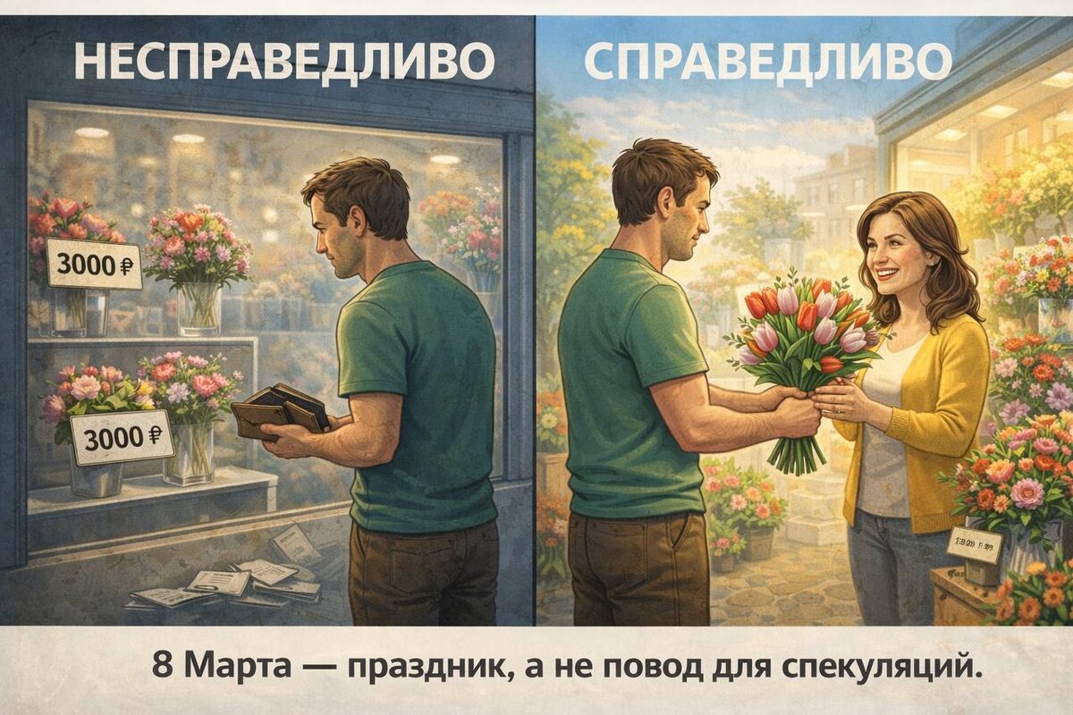 Перед 8 Марта люди всё чаще жалуются на резкий рост цен на цветы. Тюльпаны в рознице уже продают дороже 300 рублей за штуку, небольшие букеты стоят от 3000 рублей и выше. В результате цветы, которые должны быть символом внимания и заботы, становятся настоящей роскошью. 8 Марта — праздник, а не повод для спекуляций. Цены должны быть справедливыми для людей.
