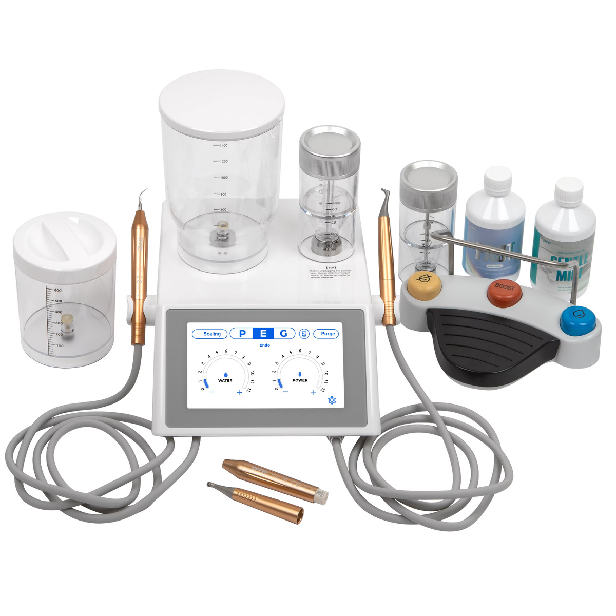 Тренд последних лет — объединение ультразвука и пескоструйного аппарата в одном корпусе. Это экономит место на столике врача и позволяет проводить комплексную гигиену по современным протоколам (например, GBT). В таких аппаратах реализован подогрев воды для снижения гиперчувствительности зубов.