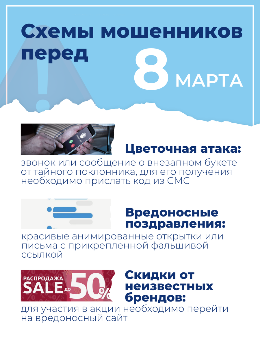 ⚠️ Традиционно в период праздников просыпаются злоумышленники с новыми схемами обмана. В ход идут трогательные открытки, «конкурсы» в мессенджерах, ложные звонки и вымышленные букеты. Схема простая – войти в доверие и получить личные данные, либо заразить устройство вредоносным ПО. О самых популярных схемах – читайте в нашей карточке! 🌿 Не каждый букет или звонок – повод паниковать! Вполне возможно, что близкие действительно решили порадовать вас подарком или вниманием. Простая проверка звонка или ссылки на официальный ресурс помогут сохранить спокойствие и избежать неприятностей. #Безопасность #8Марта #СтройкомплексЮгры