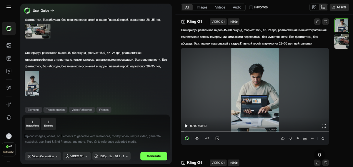 - генерация роликов по другим видео, изображениям, тексту;