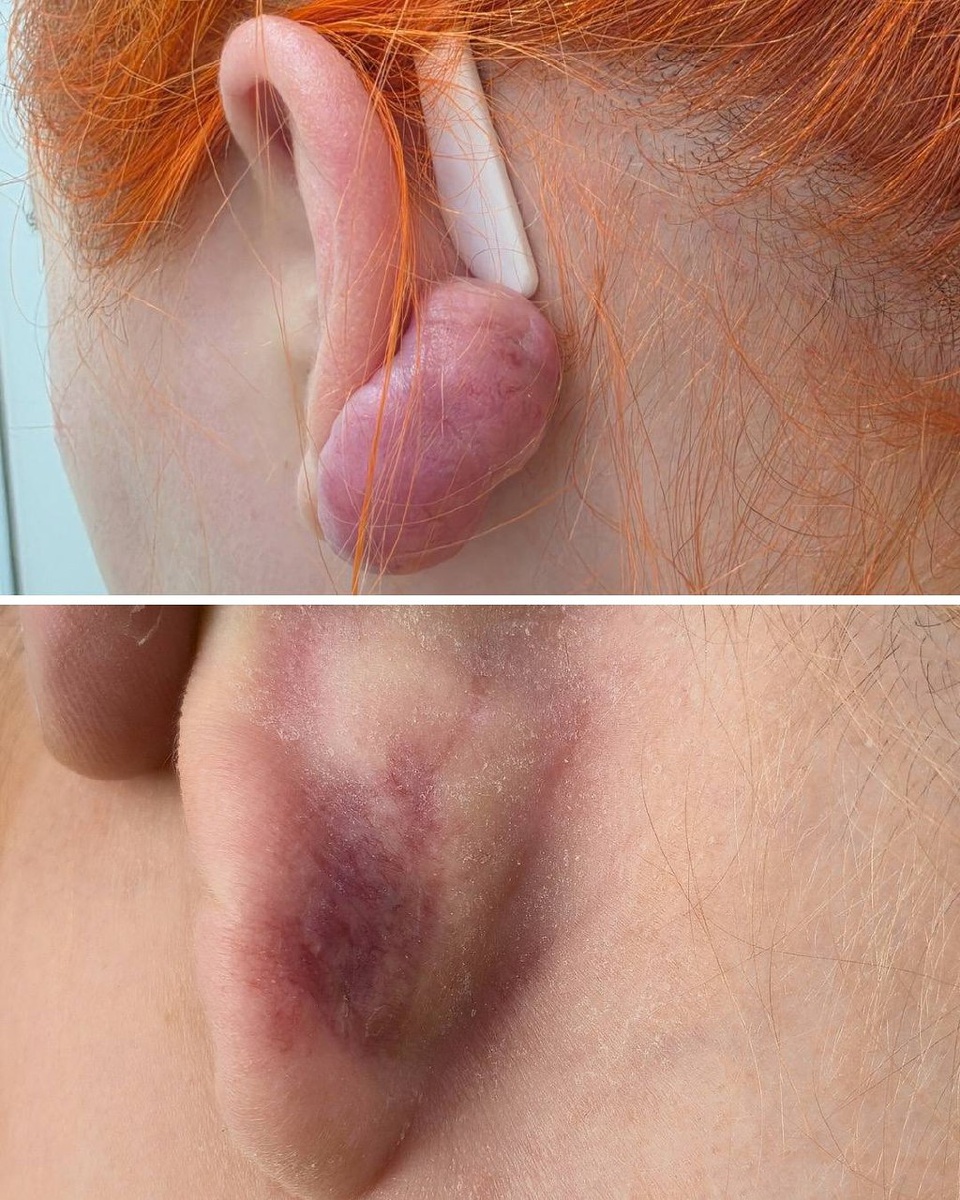 Ко мне обратилась пациентка, у которой на мочке уха возник келоид после пирсинга