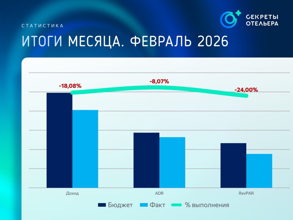 Сегодня закрываем итоговые отчёты по февралю и делимся результатами работы. Итоги неоднозначные. Месяц снова выдался непростым и оставил нас с довольно конфликтующими цифрами. В одном отеле второй месяц подряд не выполняется план. Февраль финишировал ещё болезненнее, чем январь. Дефицит RevPAR в 24% выглядит почти катастрофой. Уже в начале месяца было понятно, что планы слишком амбициозны. Бороться за них приходилось разными способами - даже такими непопулярными, как снижение цен. Это позволило сократить отставание от плана, но поражение всё равно крупное. Во втором отеле - воплощение перфекционизма. План был составлен точно и выполнен на 107%. Отклонение всех фактических показателей от бюджета - в пределах 10%. И всё в нашу пользу. Тот самый случай, когда точное попадание приносит победу. Никто не обещает, что в марте будет проще. Весна в Подмосковье полна тревог и сюрпризов. Главное, чтобы RevPAR это тоже понял.