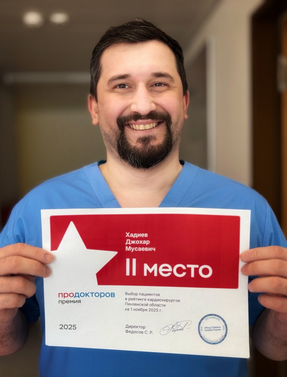 региона, и наш Федеральный центр сердечно-сосудистой хирургии уже много лет стабильно занимает лидирующие позиции. ✅ Специалисты ФГБУ «ФЦССХ» Минздрава России (г. Пенза) ежегодно становятся лауреатами престижных номинаций. Так, в минувшем 2025 году наш коллега, врач-сердечно-сосудистый хирург Хадиев Д.М. заслуженно вошел в тройку лучших в категории «Выбор пациентов в рейтинге кардиохирургов». Джохар Мусаевич, поздравляем Вас, так держать! 👍
