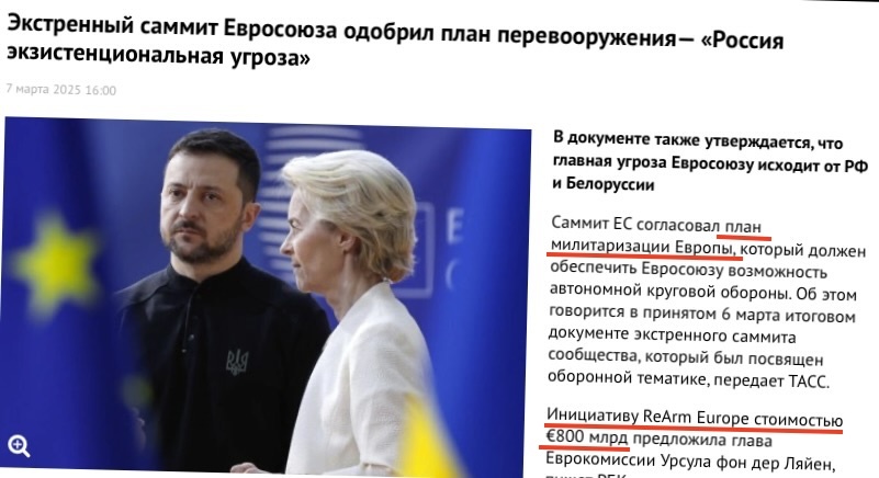 САММИТ ЛИДЕРОВ ЕС СОГЛАСОВАЛ ПЛАН МИЛИТАРИЗАЦИИ ЕВРОПЫ НА 800 МЛРД ЕВРО