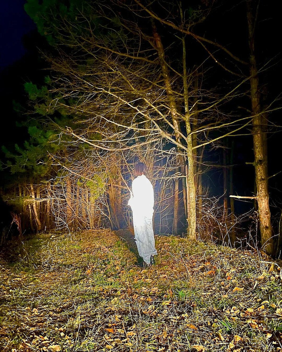 Я чуть фонарик не выронил. По огороду ходила какая-то старуха, вся в белых одеждах. Заметив что я на нее направил луч фонаря она направилась прихрамывая в мою сторону. Я выключил фонарь, сел на лавку, и сжался от страха. Снова стало темно и тихо.