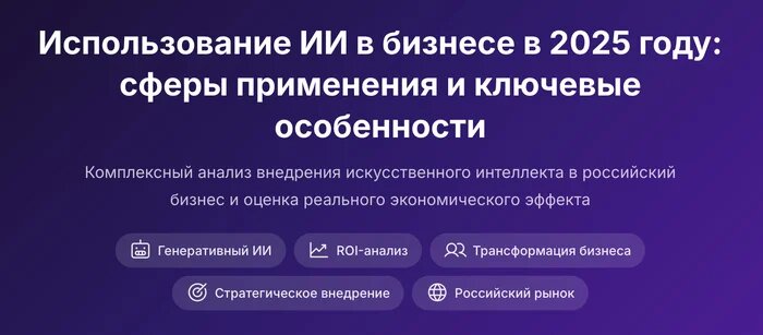 В прошлом посте мы разобрали, кто есть на рынке глубоких исследований (Deep Research) и почему из России к большинству сервисов не подобраться. Теперь покажем, как это работает на практике. Мы дали Neirolabs задачу: проанализировать использование ИИ в бизнесе за 2025 год. Не абстрактно "рассказать про ИИ", а конкретно: какие сферы внедряют, какие результаты получают, какие риски и что из этого реально работает. Вот что получилось Как проходит исследование по шагам Глубокие исследования - это не обычный ChatGPT, который генерит текст из обучающей выборки. Тут работает автономный агент, который сам ходит в поисковые системы, находит ресурсы и источники, сверяет данные и делает выводы. Вот, что происходит после нажатия кнопки: 1. Анализ запроса - агент разбирает задачу на подтемы и составляет план исследования. Для нашего запроса он выделил маркетинг, HR, операции, финансы, МСБ и риски - шесть направлений 2. Поиск источников - агент формирует поисковые запросы и идет в интернет. Не один з
