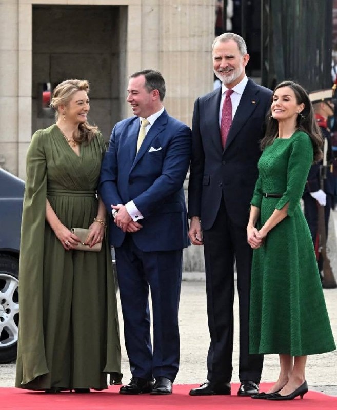Испанский монарх и его люксембургский визави по прямой мужской линии Бурбоны-потомки того самого Генриха IV, первой женой которого была знаменитая королева Марго! Однако, контраст пар, при всем уважении к люксембургским, очевиден, кажется, даже испанская пара в этой связи как-то себя немного неловко ощущала😆 🔹Великая герцогиня Стефани в наряде от Elie Saab 🔹Королева Летисия в Carolina Herrera