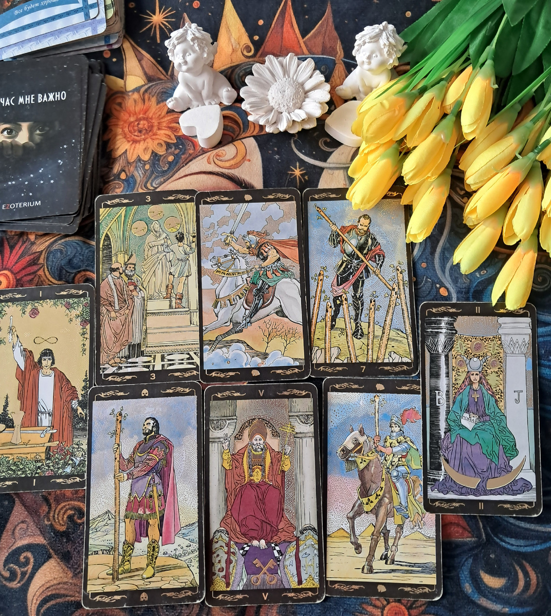 2. Вечер: Страстные, огненные, возможно, связанные с поездками (Маг, Рыцарь Жезлов).