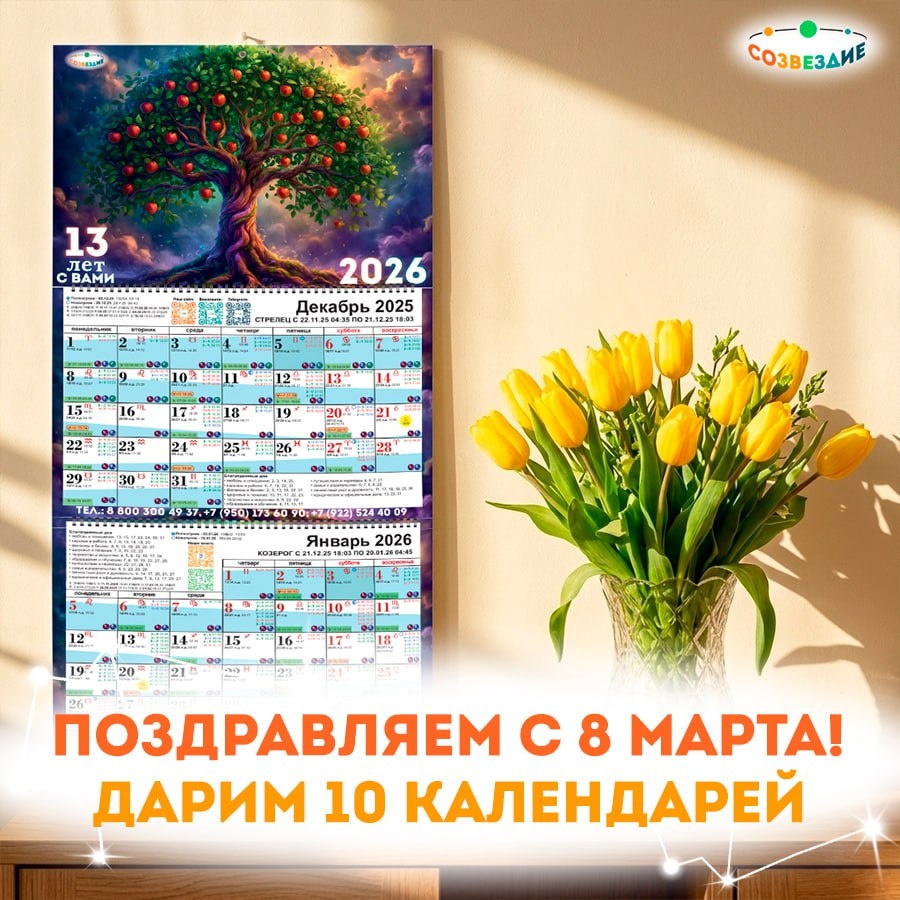 ! 🌸✨ В этот прекрасный весенний праздник мы хотим подарить инструмент, который поможет вам быть в гармонии с собой и Вселенной весь год. Разыгрываем 10 экземпляров нашего уникального астрологического календаря на 2026 год! 🎁 Что ждет победительниц внутри? Это ваш личный звездный навигатор, который подскажет идеальное время для: • Запуска новых проектов и деловых побед; • Романтических свиданий и семейных торжеств; • Дней «для себя», практик саморазвития и отдыха. В календаре подробно описаны движения планет, фазы Луны и рекомендации на каждый день. Пусть каждый ваш шаг будет подкреплен энергией звезд! Как принять участие? Все максимально просто! Наш бот-помощник проверит выполнение условий и выберет победителей: 👉 https://t.me/PatLambda_bot?start=cal2026_apr_tg_p1 Наши призы: ✈️ По РФ отправим бумажную версию календаря почтой. 🌐 Для участниц из других стран — электронная версия. 🏁 Итоги розыгрыша: подведем прямо в праздник — 8 марта в 14:00 (МСК). Пусть весна начнется с п