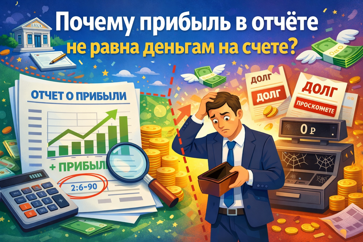 В отчёте о прибылях и убытках — прибыль 3 млн рублей. Через неделю — выплаты зарплат, расчёты с поставщиками и налоговая. На расчётном счёте — 400 тысяч. Если вам знакома эта ситуация, вы не одиноки. Почти каждый предприниматель задавал вопрос: «Если бизнес прибыльный — где деньги?» Проблема не в бухгалтерии и не в том, что кто-то ошибся. Главная причина в другом: Прибыль — это не деньги. Разберёмся, почему прибыль в отчёте не равна денежному потоку и где возникает разрыв. 1. Прибыль и денежный поток — разные показатели Важно понимать разницу между двумя ключевыми отчётами: Отчёт о прибылях и убытках (P&L) — показывает прибыльность и эффективность бизнеса. Отчёт о движении денежных средств (Cash Flow) — показывает реальные поступления и списания денег. Пример: Вы отгрузили клиенту товар на 5 млн рублей с отсрочкой платежа 60 дней. В P&L уже отражена выручка и прибыль, а в отчёте о движении денежных средств — ноль поступлений. При этом вы уже: закупили товар, оплатили логистику, выплати