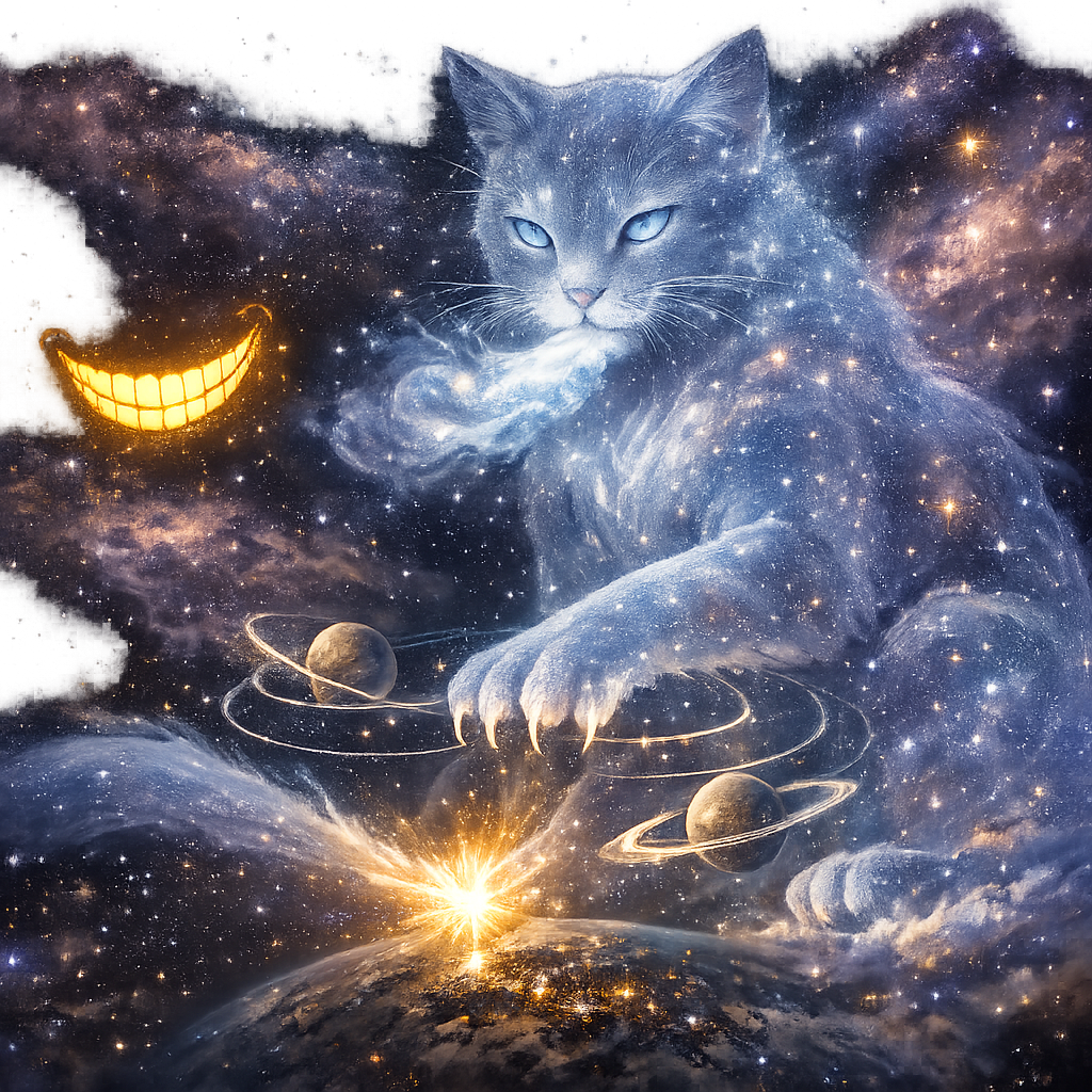 В прошлый раз мы остановились на том, что от столкновения Чеширской Улыбки и Кота Шрёдингера полетели искры. Из них получились люди, звери, орлы и куропатки. Но были и другие искры. Те, что упали в самую глубокую тьму — туда, где ещё не было ничего. Даже желания быть. Из этих искр родилась Ярость Кота. Не злая. Не добрая. Просто огромная, тёплая, когтистая сила, которая сказала: «Хватит просто быть. Пора защищать то, что есть». Ярость Кота ударила хвостом по пустоте — и появились звёзды.
