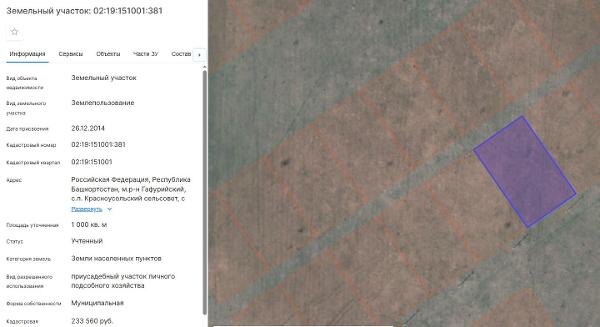 Название: земельный участок из категории земель населенных пунктов, кадастровый номер 02:19:151001:381, площадью 1000+/-11 кв.м., вид
