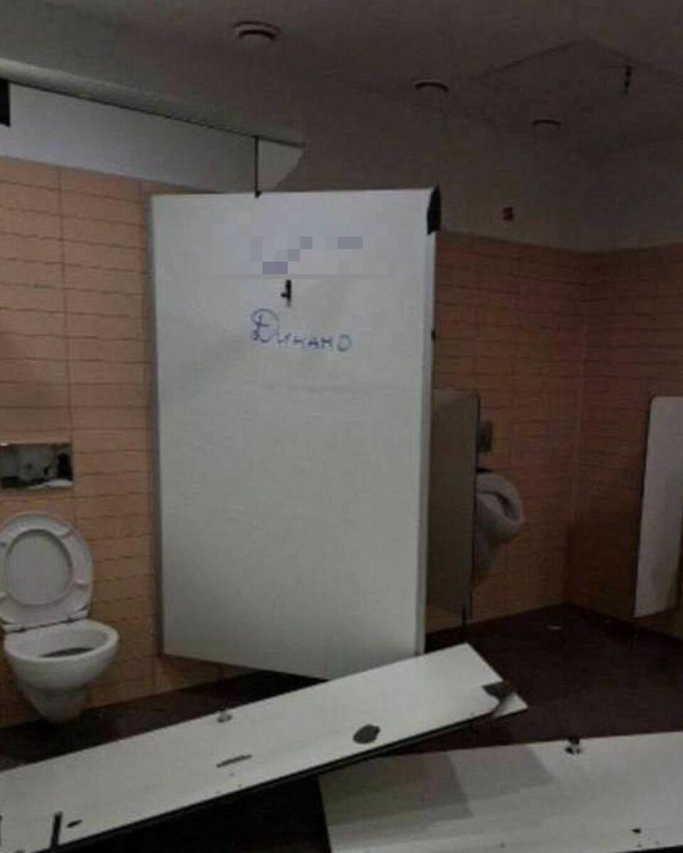 В сети появилось фото разгромленного туалета на стадионе «ВТБ Арена» после кубкового дерби «Динамо» — «Спартак». На двери красуется надпись, нецензурно призывающая совершить половой акт в отношении бело-голубых. Динамовцы, впрочем, и сами не удержались от провокационной реакции, причём на официальном уровне. Пресс-служба клуба опубликовала картинку, где угадывается надпись «Е5 опять». Как известно, обозначение «Е5» в фанатской среде используется в значении акта сексуальной активности из-за созвучия с обозначающим это действие нецензурным глаголом. «Динамо», напомним, в первом матче полуфинала Пути РПЛ Кубка России разгромило «Спартак» со счётом 5:2. Ответная игра состоится 18 марта на «Лукойл Арене». @russian_rt_sport