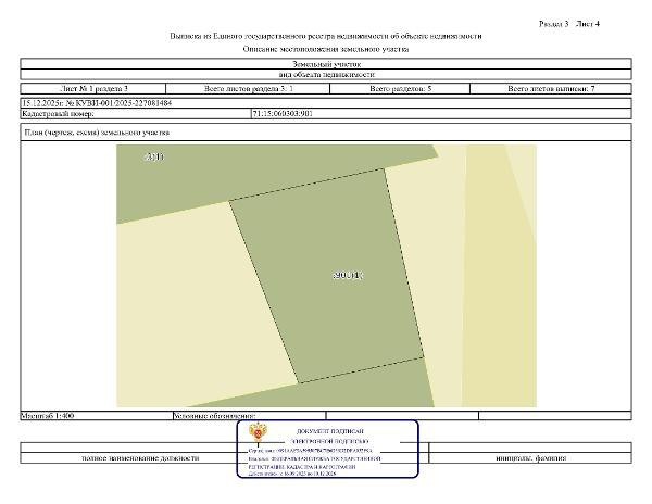 Название: Земельный участок с кадастровым номером 71:15:060303:901, расположенный на землях населенных пунктов, адрес: Российская Федерация