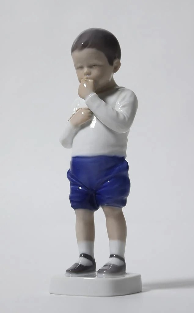 Мальчик с фруктами в руках. Дания, г. Копенгаген, Bing & Grondahl Bing & Grondahl, 1970-1983 Фарфоровая статуэтка «Петр. Мальчик с фруктами в руках». Ручная подглазурная роспись. Дания, Копенгаген, Bing & Grondahl. Скульптор: Ingeborg Plockross Irminger. Клеймо: 3 towers B&G Copenhagen Porcelain Made in Denmark, 1970–1983 гг. Модель №1696. Инициалы художника: KR. Высота 18 см. Статуэтка второго сорта, без сколов, повреждений и реставраций. Porcelain figurine “Peter. Boy with fruits in hands”, hand-painted underglaze, Denmark, Copenhagen, Bing & Grondahl, sculptor Ingeborg Plockross Irminger, mark 3 towers B&G Copenhagen Porcelain Made in Denmark (1970–1983), model 1696, initials KR, height 18 cm, second sort, no chips or damage. Bing & Grondahl 1696 (BG_1696). Стоимость лота: 5 900 ₽ Подробнее на нашем сайте