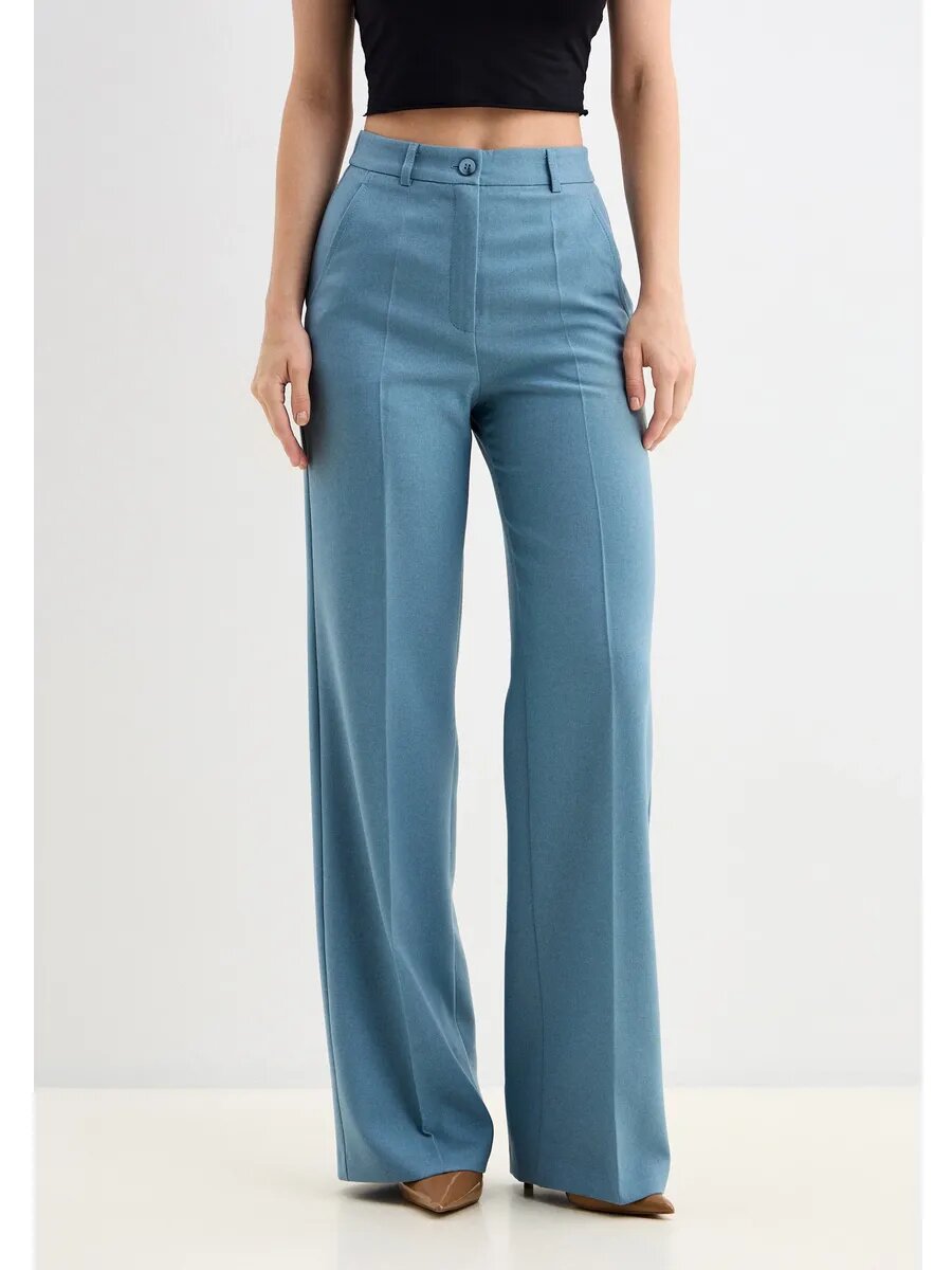 Стильные классические брюки из premium костюмной ткани с аэромягчением — прямой крой, завышенная посадка, боковые карманы и резинка в задней части пояса. Ткань мягкая и комфортная, не сковывает движений.