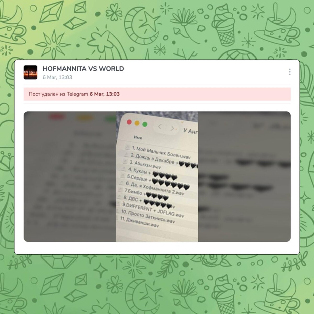 📛 HOFMANNITA опубликовала в своём телеграм-канале треклист нового альбома «У Ангелов Уродливые Лица», но тут же его удалила