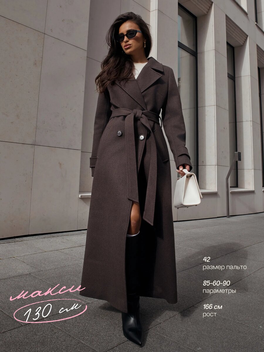Элегантное женское пальто оверсайз из шерсти с двубортной застёжкой и поясом — классическая вещь для весенне-осеннего периода. Прямой силуэт удлиняет фигуру, а пояс позволяет создавать приталенный образ.