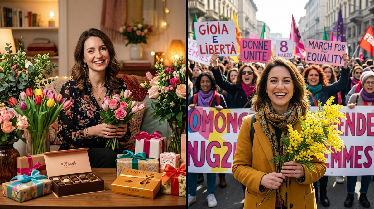 Вчера мне позвонила сестра из России: — Ну что, как чувствуется у вас праздник 8 Марта?! — Никак. Сегодня же 5 марта. Почему должно чувствоваться 8-е? — А у нас уже вовсю все поздравляют и дарят цветы! Вот в этом коротком обмене - вся разница между двумя традициями. В России 8 марта начинается заранее и растягивается на несколько дней. В Италии — строго в дату. Никаких авансов. Главный цветок итальянского 8 марта — мимоза. Жёлтая, пушистая, с острым сладковатым запахом. Она зацветает как раз в конце зимы, стоит дёшево и видна издалека — в 1946 году женские организации выбрали её именно за это: символ для всех, не только для тех, кто может позволить себе розы. Веточку мимозы дарят всем: коллеге, учительнице, соседке, незнакомой женщине в баре. Никакого давления на мужчин покупать дорогие подарки. Маленький букетик — уже достаточный жест. Российская традиция — про женственность: мужчины дарят цветы, шоколад, устраивают сюрпризы. Женщина на один день становится «принцессой». Это тепло и п