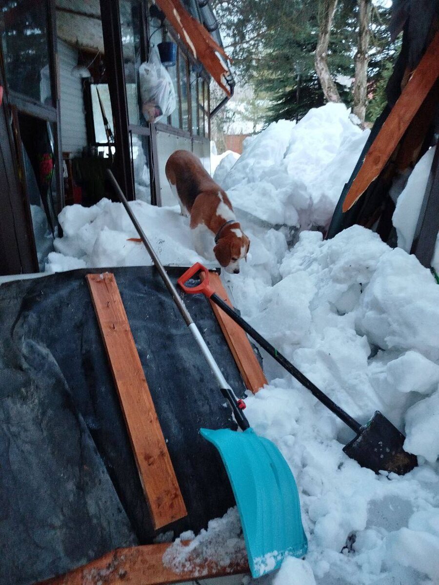 у моей бабушки, которая там живет, из-за снега (будь он неладен) обвалилась часть крыши на веранде и выломала дверь на веранду 😒 . просто капец. Арья 🐕 еще не подозревает, что вечером за ней приедет такси (она обожает дачу) а как ваши дела? снег в этом году как-то смог нарушить ваши планы? сломать ваши крыши, например?