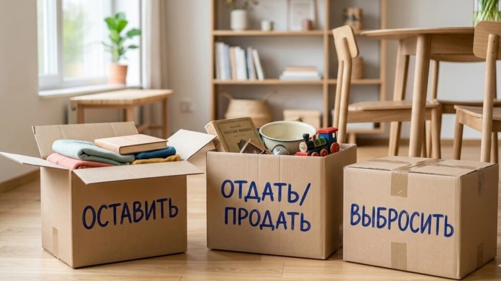 Удобно делить вещи на три группы. Первая остаётся. Вторая отправляется на продажу или в добрые руки. Третья без сожаления выбрасывается. Такой подход помогает не зависать над каждым предметом и быстрее увидеть результат. Когда полки и поверхности освобождаются, в доме будто становится легче дышать.