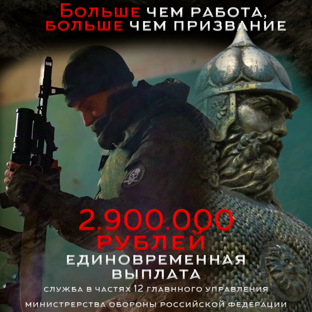 Это не рекламный трюк. При подписании контракта на спецобъекты 12-го управления полагается единовременная выплата в размере 2 900 000 рублей.