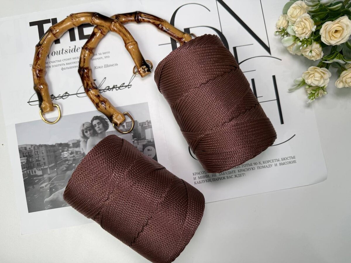💕 Здесь полипропиленовый шнур в шоколадном цвете и бамбуковые ручки. Будем творить красоту 🌸 И еще положили подарок 🎁 это плюшевая пряжа и замочек для сумки🌸 Позже сниму видео и поделюсь ссылочками 🥰 #вязание Мой канал в Max 🩷 Мой ВК 🩷